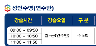 수영 실력이 뛰어나거나 능숙하신 분이라면 고급 과정 또는 연수반이 있는지 확인해 주세요.